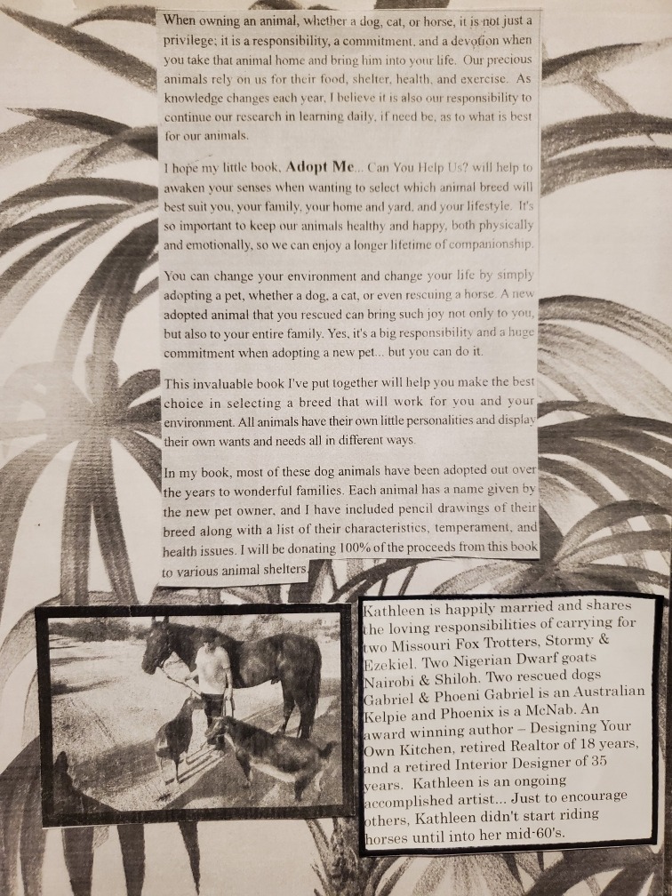 More information about this book coming soon. 100% of all proceeds will be donated to various animal shelters for needed supplies.